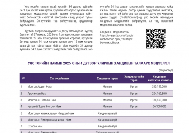 ЗГ: 1072 хувьцааны ногдол ашиг болох 337.7 мянган төгрөгийг гурав хувааж олгохоос эхний ээлжийн 135 мянган төгрөгийг өнөөдөр олгоно