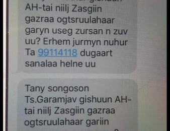 Уг мессэжид, Засгийн газрыг огцруулах үндэслэлд гарын үсэг зурсан гишүүдийн нэр, утасны дугаарыг хавсарган, “Таны сонгосон .... гишүүн АН-тай нийлж, Засгийн газраа огцруулахаар гарын үсэг зурсан нь үнэн үү. Эрхэм журмын нөхөр та .... дугаарт саналаа хэлнэ үү” гэжээ.