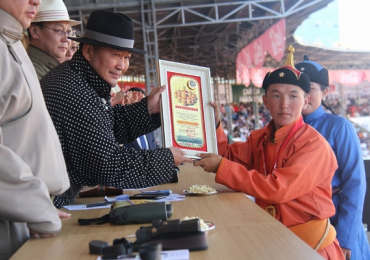 Монгол Улсын Ерөнхийлөгч Х.Баттулга Тулгар төрийн 2226, Их Монгол Улсын 811, Ардын хувьсгалын 96 жилийн ой, Үндэсний их баяр наадмаар азарга, их нас, соёолон, хязаалан, шүдлэн, даага насны хурдан морины уралдаанд унасан хүлгээ түрүү магнай, аман хүзүүнд хурдлуулж, айрагдуулсан унаач хүүхдүүдэд бэлэг гардуулж, амжилт ерөөлөө.