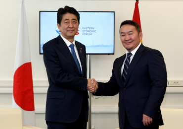 ОХУ-ын Владивосток хотод болж байгаа Дорнын эдийн засгийн форумд оролцож буй Монгол Улсын Ерөнхийлөгч Х.Баттулгад Япон Улсын Ерөнхий сайд Ш.Абэ өнөөдөр /2017.09.06/ бараалхав.