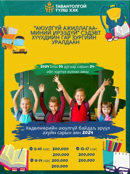 Цаг үе “Аюулгүй ажиллагаа-Миний ирээдүй” сэдэвт гар зургийн уралдаан байгуулж байна “Аюулгүй ажиллагаа-Миний ирээдүй” сэдэвт гар зургийн уралдааныг Тавантолгой түлш ХХК-ийн ажилтнуудын хүүхдүүдийн дунд зохион байгуулж байна. Уралдаан: 6-10 нас 11-14 нас 15-17 насны ангилалаар явагдана.