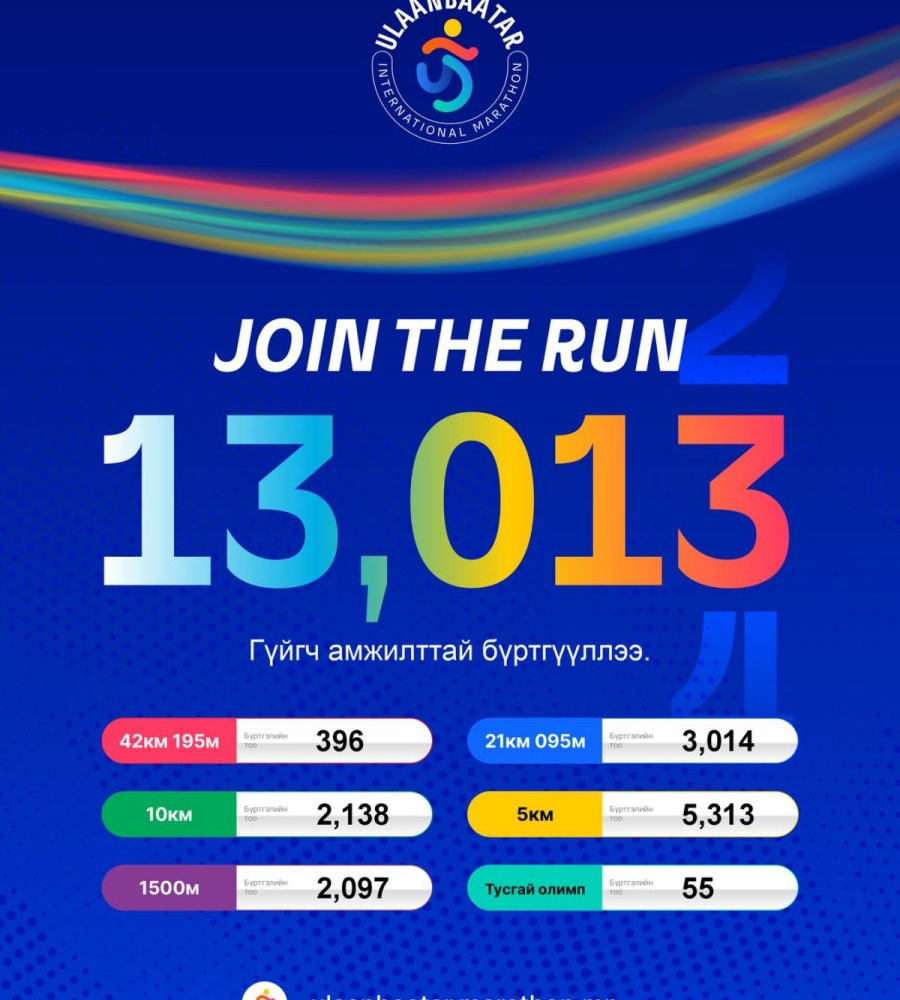 “Улаанбаатар марафон-2026” олон улсын гүйлтийг тавдугаар сарын 23-нд Д.Сүхбаатарын талбайд зохион байгуулахаар болсон билээ. Марафонд гүйх оролцогчдыг ирэх сарын 1-ний 17:00 цагт хүртэл бүртгэнэ гэдгийг зохион байгуулагчид хэлж байгаа юм.