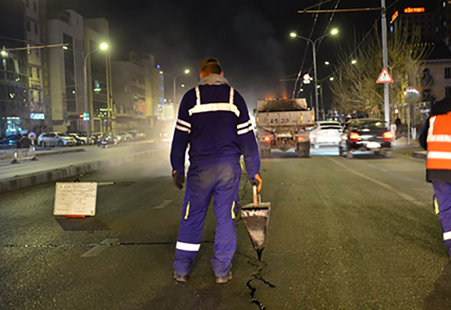 “Улаанбаатар зам засвар, арчлалтын газар” ОНӨААТҮГ-ын Засвар ашиглалтын албанаас Хаврын засварын ажлын хүрээнд 2017 оны 04 дүгээр сарын 13-ны өдрөөс 05 дугаар сарын 14-ний өдөр хүртэл Энхтайваны өргөн чөлөө буюу Офицеруудын ордноос Таван шарын автобусны буудал, Чингисийн өргөн чөлөө буюу Яармагийн гүүрнээс 120-н мянгатын уулзвар хүртэл нийт 31000 у/м авто замын гагнаасны ажлыг 2 авто гудронатор, 2 бага оврын ачааны машин, инженер, мастер, замчин зэрэг нийт 24 хүний бүрэлдэхүүнтэйгээр хийж гүйцэтгээд байна.