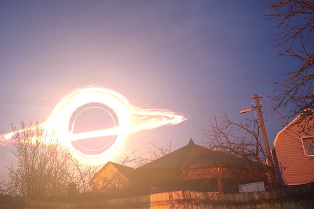 Видеонд хар нүх тэнгэрээс удаан хөдөлсөөр газар луу ирж байгааг үзүүлсэн байв. Физикчдийн үнэмшлээр бол хар нүхний ойролцоо хугацаа удаашран, орон зай томордог. Тиймээс хар нүхэнд ойртох тусам хугацаа, орон зай гаждаг.