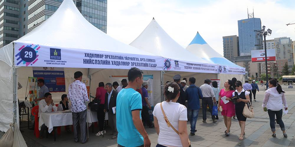 Хөдөлмөр, нийгмийн хамгааллын салбарын нээлттэй хаалганы өдөрлөг өнөөдөр Сүхбаатарын талбайд болж байна. Энэ үеэр 20 мянган иргэнийг нээлттэй ажлын байранд бүртгэхээс гадна аж ахуйн нэгжүүдийн мэдээллийг нэг дор хүргэж, үндэсний үйлдвэрлэгчдийн бүтээгдэхүүнийг ч сурталчилж байгаа юм. Тухайлбал, улс даяар явагдаж буй “Уран үйлчин 2017” улсын анхдугаар уралдаанд шалгарсан шилдэг уран үйлчдийн гар урлалын бүтээлүүдийг “Эксклюзив” компани дэлгэн тавьсан байна. “Уран үйлчин 2017” уралдааны гол зорилго нь улсын хэмжээнд хичнээн үйлдвэрлэгч байна вэ гэдгийг тогтоох мэргэжлийн судалгаа гаргаж, монгол уран үйлчдийн үнэлэмжийг дээшлүүлэхэд оршиж байгаа юм. Тэдний бодит судалгаанд үндэслэн импортын бүтээгдэхүүнтэй өрсөлдөхүйц чанартай, үнэ боломжийн бүтээгдэхүүн үйлдвэрлэх томоохон төрөлжсөн үйлдвэрлэл бий болгох зорилгыг нийслэлийн удирдлагууд, хотын захиргаа дэмжиж байна. Хотын дэмжлэгтэйгээр оёдлын төрөлжсөн үйлдвэрүүд эхнээсээ нээгджээ. Өнөөдрийн байдлаар 4-5 үйлдвэр үйл ажиллагаагаа явуулж эхэлсэн байна.