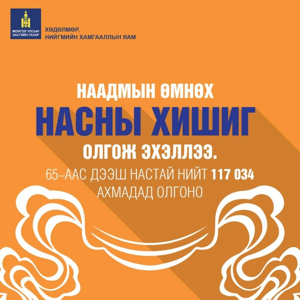 Тэгвэл Ардын хувьсгалын ойн баярыг тохиолдуулан өчигдрөөс эхлэн хоёр дахь удаагийн “Насны хишиг”-ийг олгож эхэлжээ. Улсын хэмжээнд 65-69 насны 44696 ахмад, 70-79 насны 52413 ахмад, 80-89 насны 17559 ахмад, 90-ээс дээш насны 2366 ахмад нийт 117,034 ахмад настны “Насны хишиг” олгох жагсаалтыг гэрээт банкуудад илгээж, 10,1 тэрбум төгрөгийн санхүүжилтийг олгоод байна.