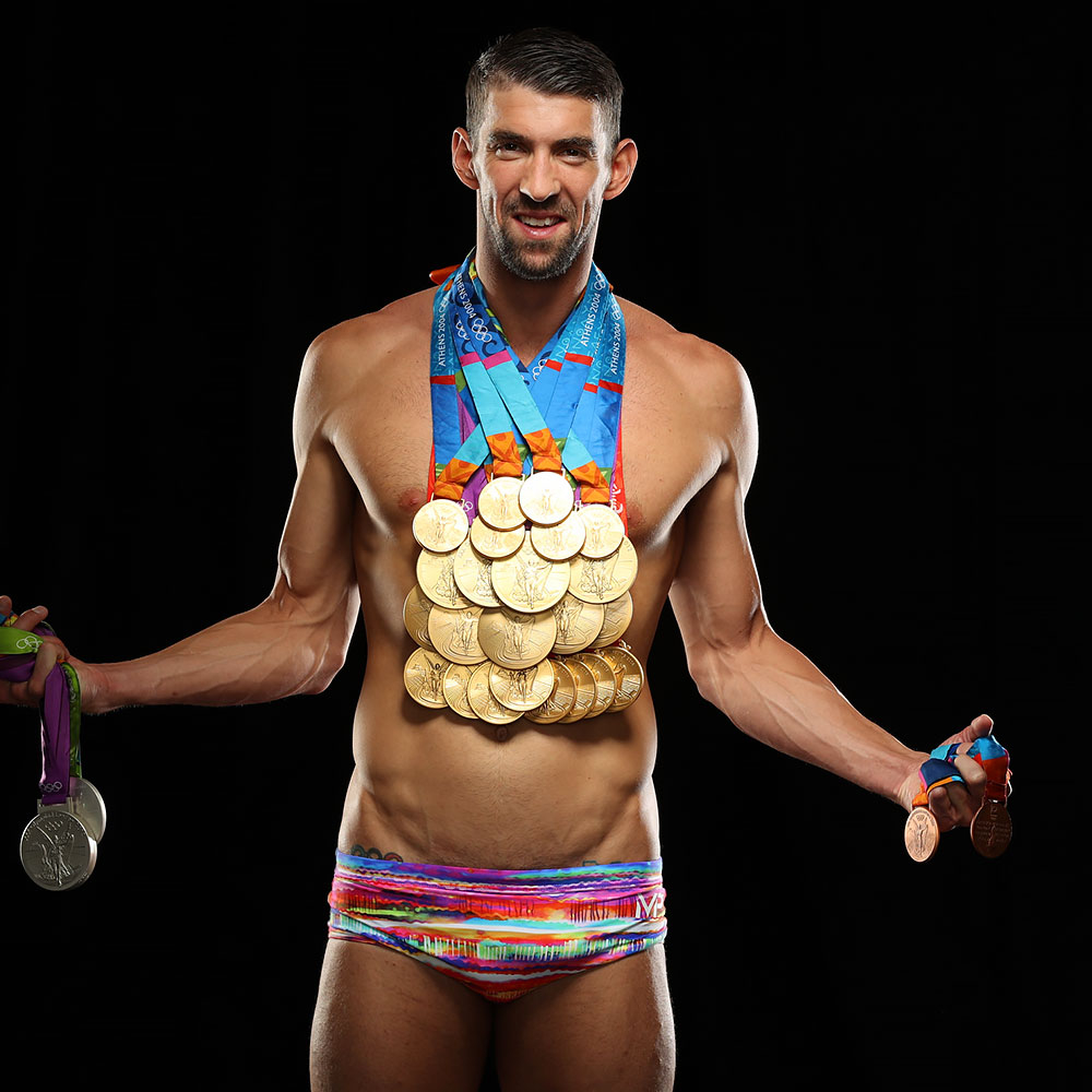 Олимпийн наадмаас хамгийн олон медаль авсан хүнийн медалийн тоо 23 байсныг Пелпс 28 болгон эвдсэн. Түүний медалуудын 23 нь алт үлдсэн 5 нь мөнгө хүрэл медалиуд юм. Тэрээр анхлан турж жин хасах зорилготой усанд сэлж эхэлсэн бөгөөд АНУ-ын 68 жилийн түүхэн дэх хамгийн залуу эрэгтэй усанд сэлэгч болсон юм.