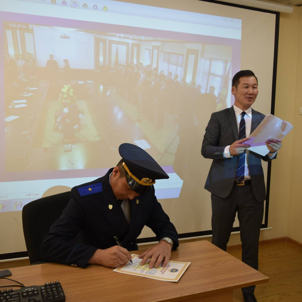 Прокурорын тухай хуулийн эх бичвэрийг хүлээн авсаны дараа “Прокурорын тангараг өргөх” ёслолын ажиллагааг Аймаг, Нийслэл, Тээвэр, Дүүрэг, Сум дундын прокурорын газуудтай цахим сүлжээгээр холбогдож Улсын Ерөнхий прокурорын газрын Тамгын газрын дарга Ц.Арвинбуудай удирдан улс орон даяар прокурорууд Морин цагт тангарагаа өргөж төрийн далбаанаас адис хүртсэн юм.