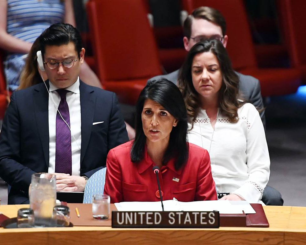 НҮБ дэх Америкийн төлөөлөгч Никки Халлей Лхагва гарагт болсон НҮБ-ийн Аюулгүйн Зөвлөлийн яаралтай уулзалтын үеэр Хойд Солонгосын эсрэг цэргийн хүч үзүүлнэ гэж сүрдүүлэв.