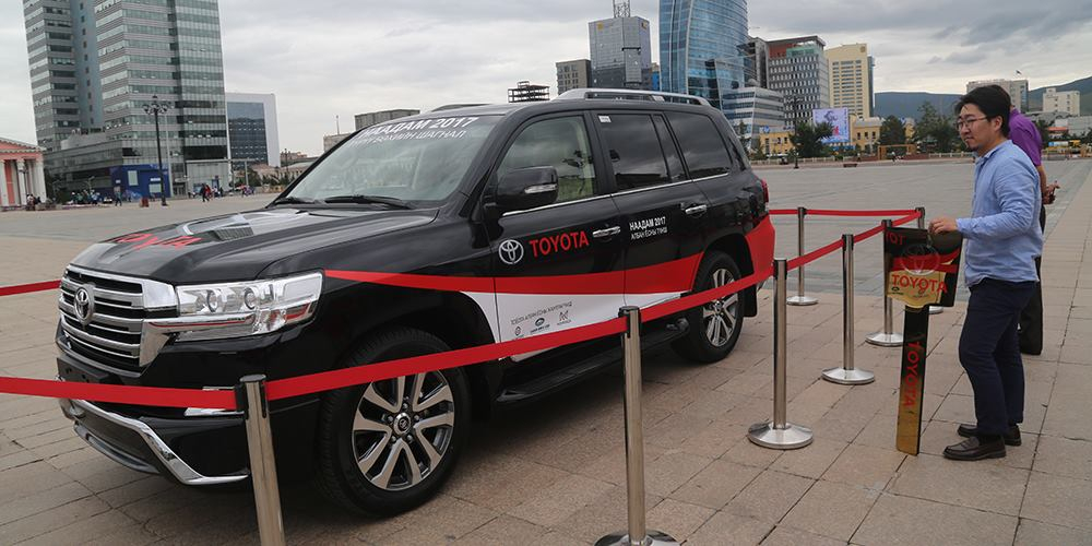 Наадамд түрүүлсэн бөхийг “Ланд крузер-200” маркийн авто машинаар шагнадаг уламжлал тогтоод байна. Үндэсний их баяр наадмын албан ёсны түншээр Японы Тоёота компани дөрөв дэх жилдээ ажиллаж буй юм.