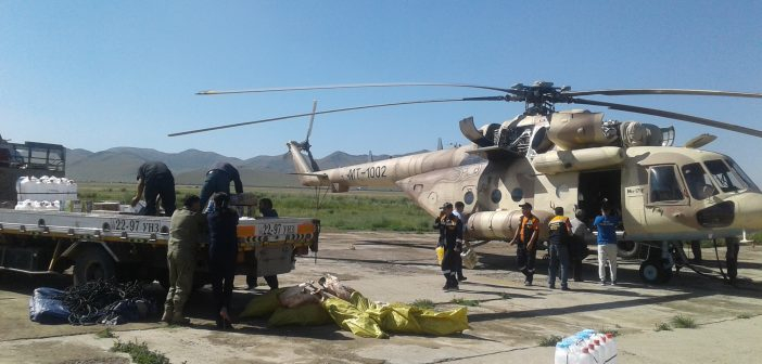 Онцгой байдлын ерөнхий газрын дарга, хошууч генерал Т.Бадралаар ахлуулсан ажлын хэсэг түймрийн голомтод ажиллаж байгаа алба хаагчдад хоол хүнс, хувцас, эм, эмнэлгийн хэрэгсэл зэрэг иргэд, аж ахуйн нэгж байгууллагаас ирүүлсэн хандив тусламжийн 24 нэр төрлийн бараа бүтээгдэхүүнийг хүргэхээр Зэвсэгт хүчний МИ 171Е загварын нисдэг тэргээр нислээ.