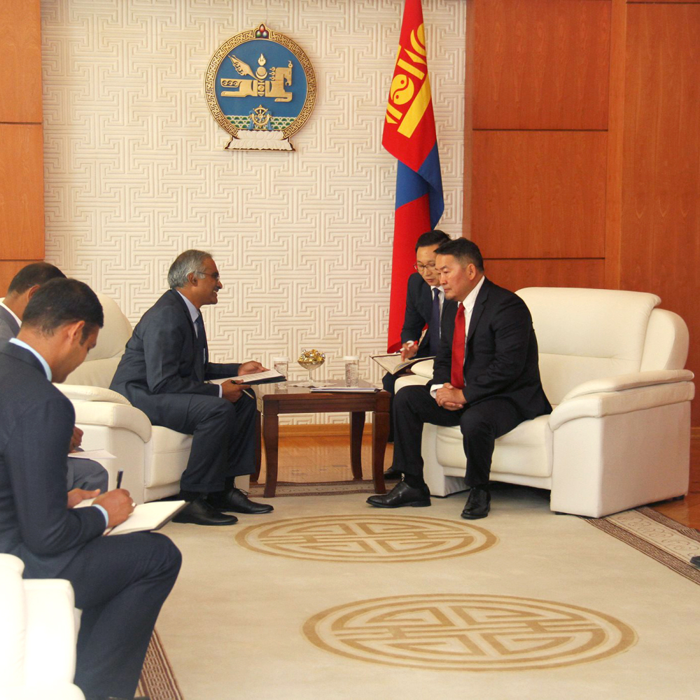 Уулзалтын эхэнд Элчин сайд Суреш Бабу Монгол Улсын Ерөнхийлөгч Х.Баттулгад БНЭУ-ын Ерөнхийлөгч Пранаб Мукержи, Ерөнхий сайд Нарендра Моди нарын илгээсэн талархлын захидлыг гардуулан өгсөн юм.