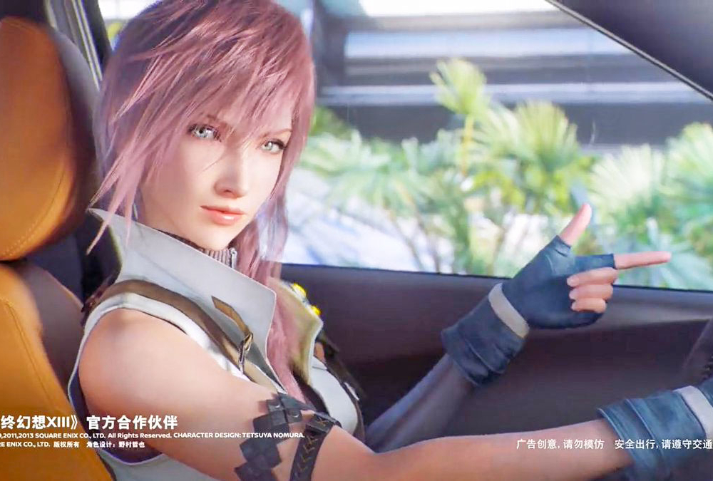 Final Fantasy-ийн дүр Lightning Snow Villiers-ийн хамт Ниссаны рекламд тогложээ. Тэд өмнө нь Прадагийн сурталчилгаанд хамт тоглож байсан. Үүнээс гадна Lightning Louis Vuittion-ий сурталчилгаанд хүртэл оролцож байлаа.