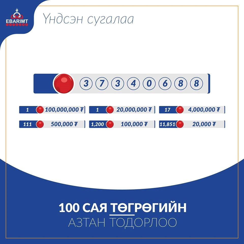 4 орон таарч 100 мянган төгрөгийн азтан 1200,
