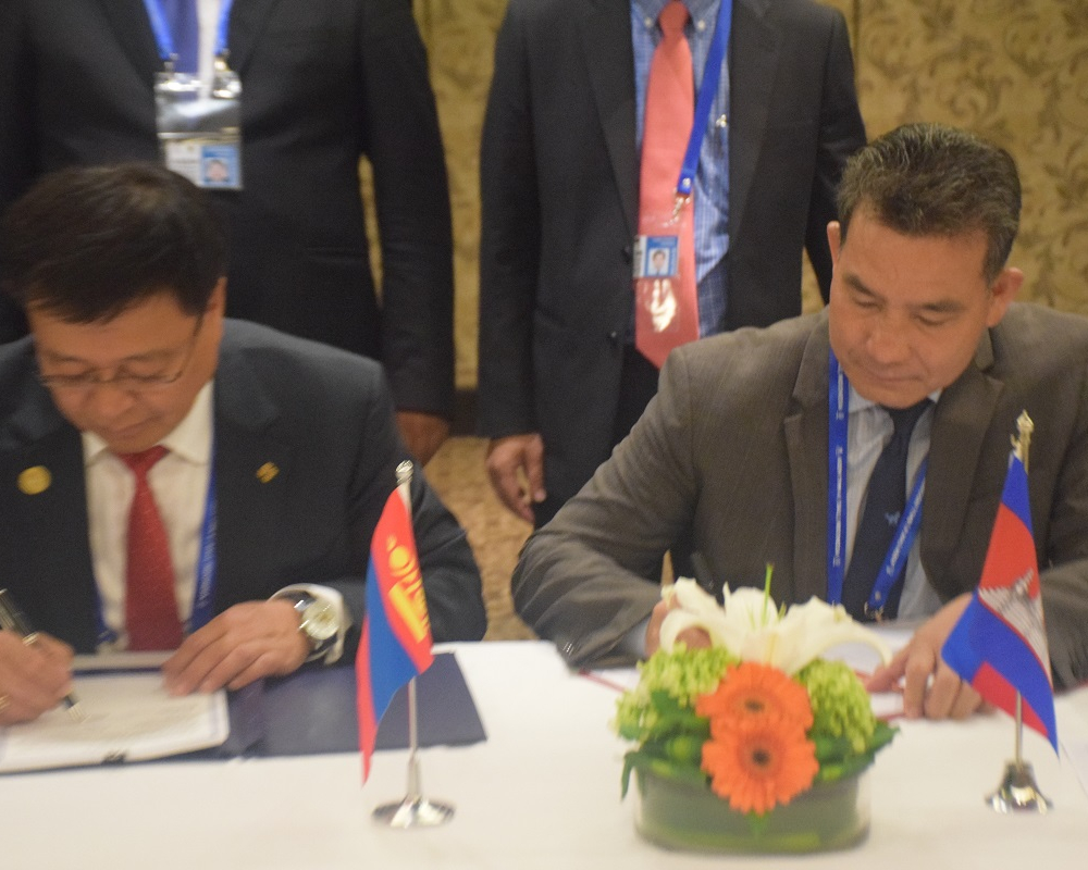 Бүгд Найрамдах Индонез Улсын Балид энэ сарын 26-28-ны өдрүүдэд зохион байгуулагдаж буй АСЕМ-ын Тээврийн сайд нарын 4 дэх удаагийн чуулга уулзалтын үеэр Монгол Улсын Зам, тээврийн хөгжлийн сайдын үүрэг гүйцэтгэгч Д.Ганбат болон Камбожийн Вант Улсын Иргэний нисэхийн асуудал эрхэлсэн Төрийн нарийн бичгийн дарга Мао Хаваннал нар Засгийн газар хоорондын Агаарын харилцааны тухай хэлэлцээрт гарын үсэг зурлаа.