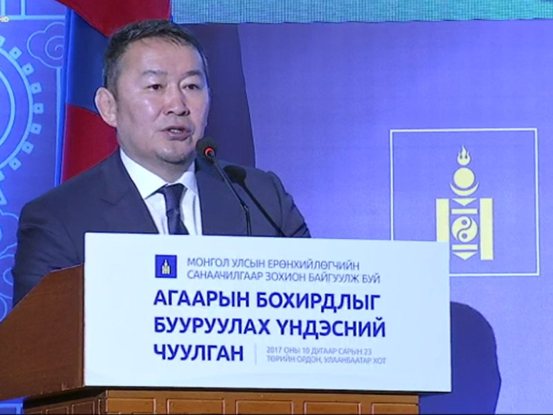 Агаарын бохирдлыг бууруулах Үндэсний чуулганыг нээж Монгол Улсын Ерөнхийлөгч Х.Баттулга үг хэллээ.
