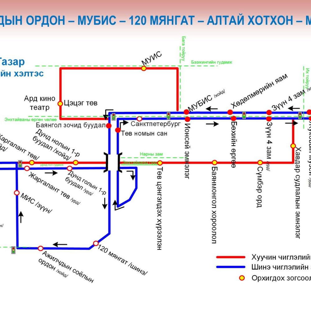 Ч:61а “Мишээл экспо-Говь үйлдвэр-Нарны хороолол-Цэцэг төв-Баянмонгол хороолол”, Ч:61б “Мишээл экспо-Говь үйлдвэр-Нарны хороолол-Баянмонгол хороолол-Ард кино театр” чиглэлүүдийг нэгтгэн Ч:61 “Офицеруудын ордон-МУБИС-120 мянгат-Алтай хотхон-Мишээл экспо” болгон өөрчилж үйлчилгээг 2017 оны 10 дугаар сарын 27-ны өдрөөс эхлүүлэхээр төлөвлөсөн тул тус чиглэлээр үйлчлүүлэгч иргэд та бүхэн доорхи зураглалын дагуу зорчилтоо төлөвлөнө үү.
