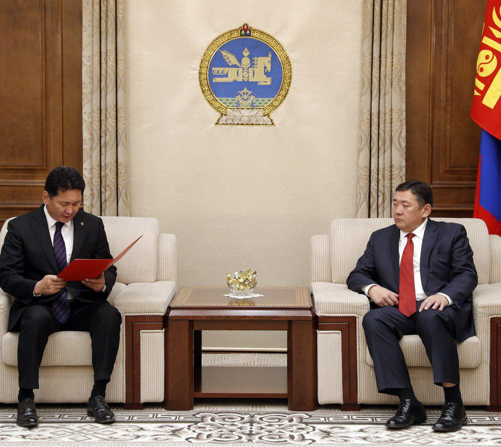 Монгол Улсын Их Хурлын дарга М.Энхболдод (2017.10.27) Монгол Улсын 2018 оны төсвийн тухай, Нийгмийн даатгалын сангийн 2018 оны төсвийн тухай, Эрүүл мэндийн даатгалын сангийн 2018 оны төсвийн хуулийн төслүүдийг Монгол Улсын Ерөнхий сайд У.Хүрэлсүх өргөн мэдүүллээ.