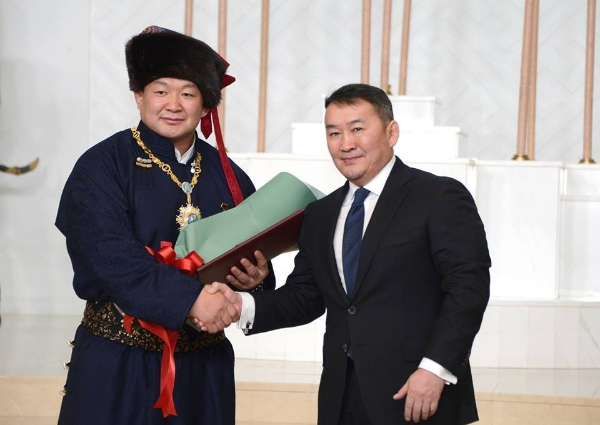 Эзэн богд Чингис хааныхаа өндөр их алдраар нэрлэгдсэн Төрийн эрхэм дээд одонг улсынхаа Төрийн тэргүүнээс тосон авч буйдаа туйлын их баяртай байна.