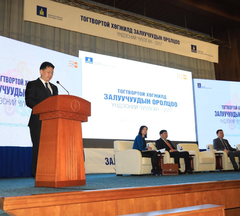 Монгол Улсын ирээдүйг тодорхойлж, хөгжил дэвшлийг түүчээлэн авч явах залуучууд та бүхэнтэй “Тогтвортой хөгжилд залуучуудын оролцоо үндэсний чуулган”-аар дамжуулан уулзаж Засгийн газраас явуулж буй бодлого, шийдвэрийн талаар байр сууриа илэрхийлж, үзэл бодлоо хуваалцья гэж бодлоо.