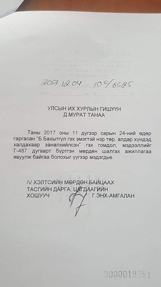 УИХ-ын гишүүн Д.Мураттай холбоотой мэдээлэл гараад байгаа билээ. Харин эрхэм гишүүн энэ асуудлаар ямар нэгэн тайлбар хийгээгүй байгаа бөгөөд нэр төр, алдар хүндэд халдахаар заналхийлсэн гэж үзээд Б.Бахытгүлийн талаар гомдол гаргасан байна.