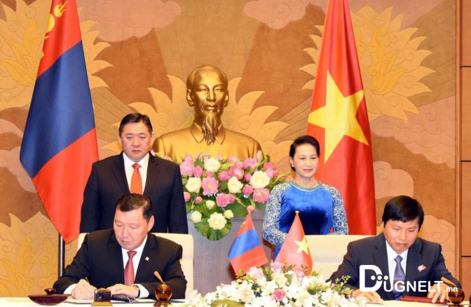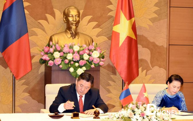 БНСВУ-ын Үндэсний ассамблейн дарга, хатагтай Нгуен Тхи Ким Нганы урилгаар Монгол Улсын Их Хурлын дарга М.Энхболдын тус улсад хийж буй айлчлалын үеэр хоёр парламентын тэргүүн нар албан ёсны хэлэлцээ хийж, Монгол Улсын Их Хурал, БНСВУ-ын Үндэсний ассамблей хоорондын хамтын ажиллагааны Санамж бичигт гарын үсэг зурав.