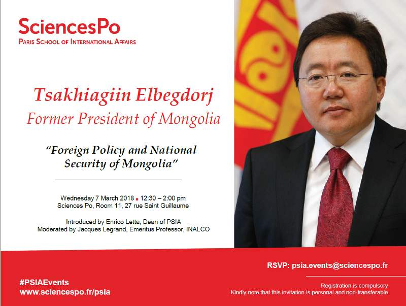 Сүүлийн үед нэлээд олны хэл аманд өртөөд байсан Монгол Улсын Ерөнхийлөгч асан Цахиагийн Элбэгдорж Францын улс төр, нийгмийн ухаан, гадаад харилцааны тэргүүлэгч сургуульд лекц уншихаар болжээ. Түүнийг тус сургуулийн захирал, Итали Улсын Ерөнхий сайд асан Энрико Летто “Монгол Улсын Гадаад харилцаа, аюулгүй байдал” сэдвээр лекц уншуулахаар урьсан байна.