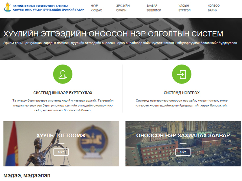 Төрийн үйлчилгээг ард иргэдэд ойртуулах, түргэн шуурхай болгох Засгийн газрын бодлого зорилтын хүрээнд ОӨУБЕГ-ын хуулийн этгээдийн оноосон нэр олголтын бүртгэлийг цахимаар буюу интернэтээр олгож эхэллээ. Ингэснээр иргэд гэрээсээ, оффисоосоо, гар утаснаасаа интернэт холбогдон http://les.burtgel.gov.mn/ хаягаар компани аж ахуй нэгжийнхээ нэрийг өөрсдөө шүүж, боломжит хувилбаруудыг илгээн баталгаажуулж авах боломжтой болжээ.