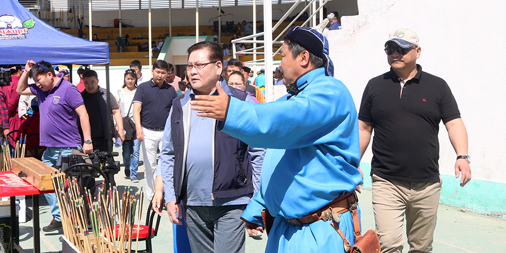 Монгол Улсын Шадар сайд, Үндэсний их баяр наадмыг зохион байгуулах хорооны дарга Ө.Энхтүвшин бямба гаригийн амралтын энэ өдөр наадмын бэлтгэл, засварын ажилтай танилцаж, Төв цэнгэлдэх хүрээлэн, сур, шагайн асар, Хүй долоон худагт ажиллалаа.
