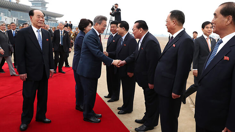 Өнөөдөр өглөө 07:30 цагт Пеньян хотын Сунан олон улсын нисэх онгоцны буудалд хоёр Солонгосын удирдагчид өөрсдийн нисэх онгоцоор Самжиёон нисэх буудал руу явсан байна.