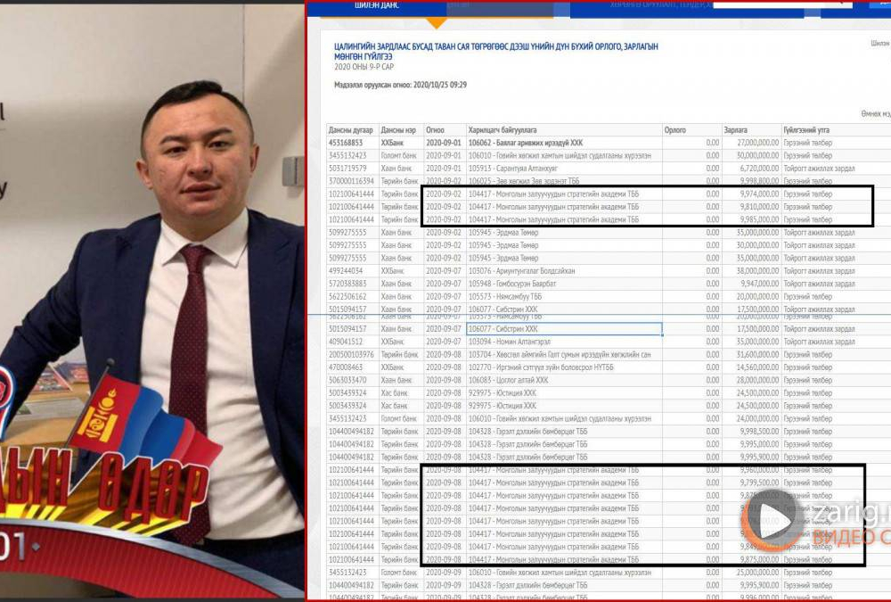 Төсвөөс их хэмжээний мөнгө авсан дараагийн төрийн бус байгууллага Монголын залуучуудын стратегийн академи. Тус байгууллага нь энэ оны 8 дугаар сард таван удаагийн гүйлгээгээр 49 525 000 төгрөг, 9 дүгээр сард арван удаагийн гүйлгээгээр 98 787 500, нийт 148 312 500 төгрөгийг төсвөөс авчээ.