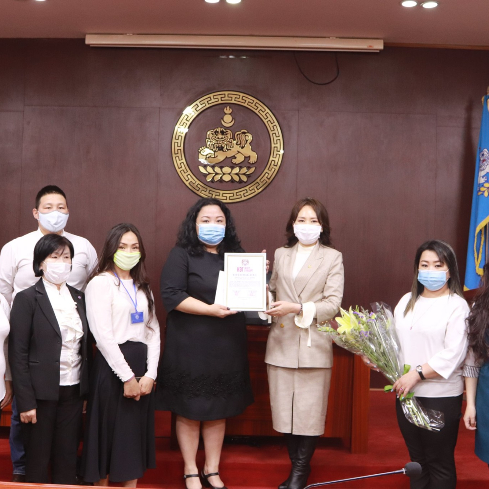 Мөн дэлхий нийтийг цочроогоод буй Коронавирусийн халдварын тархалтаас урьдчилан сэргийлэх ажлыг дүүргийн хэмжээнд зохион байгуулж буй Засаг даргын Тамгын газарт Азийн сангаас 6600 ширхэг маск хандивласанг гардуулан өглөө.