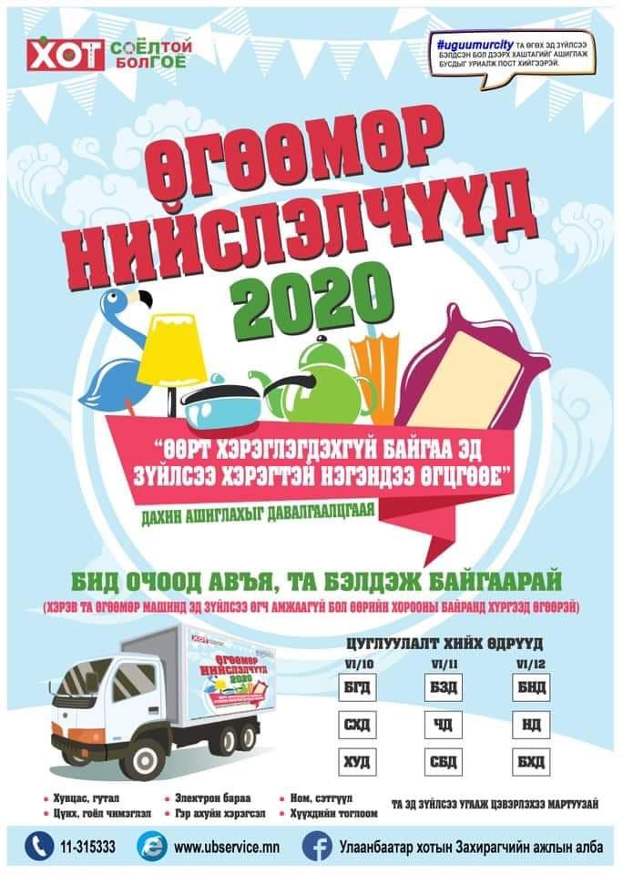 Энгийн хог хаягдлыг цэвэрлэх, ангилах, цуглуулах, тээвэрлэх, дахин боловсруулах, сэргээн засварлах,устгах журмыг хэрэгжүүлэх, эх үүсвэр дээр хог хаягдлыг ангилан ялгах, багасгах, бууруулах, дахин ашиглах чиглэлээр иргэдийн мэдлэг оролцоог нэмэгдүүлэх зорилготой Өгөөмөр нийслэлчүүд арга хэмжээ болох гэж байна.