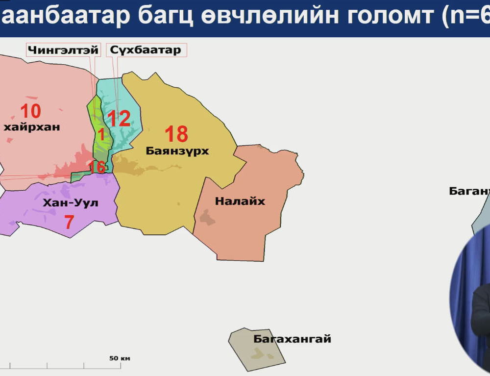Нийслэлийн Банязүрх, Баянгол дүүрэгт хамгийн их тохиолдлууд бүртгэгджээ. "Улаанбаатар хотод бүртгэгдсэн тохиолдлуудыг авч үзвэл үзвэр үзсэн караокед орсон хамт хоол идсэн бариа засал хийсэн ийм хүмүүс өвдсөн. Сүүлийн батлагдсан тохиолдол Баянзүрх дүүргийн 14 дүгээр хороо Аманхуур хорооллоос бүртгэгдсэн. Тиймээс БЗД-ийн 14-р хороонд байрлах Рапид Мед эмнэлэг болон тэнд байрлах бариа заслаар үйлчлүүлсэн хүмүүс болон Аман хуур хотхоны иргэд шинжилгээ хийлгэхийг зөвлөв.