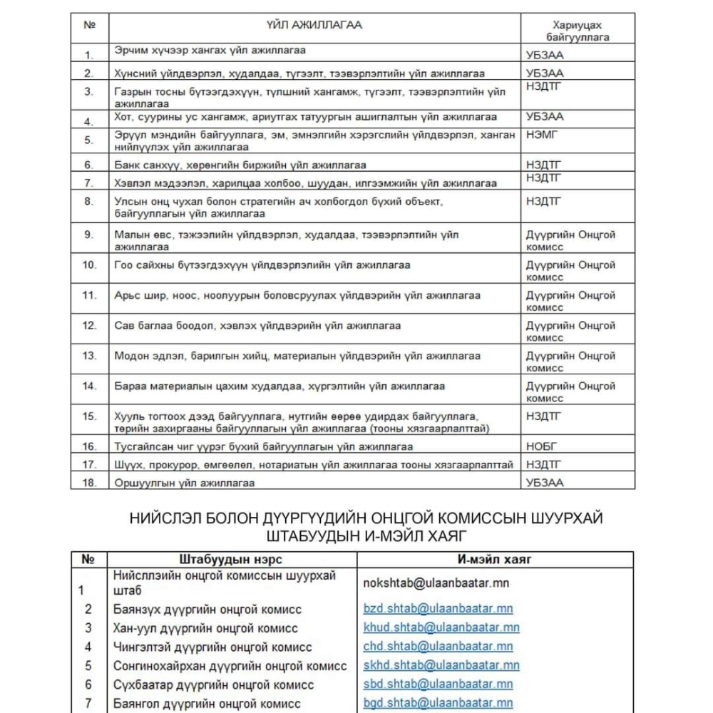 Улсын онцгой комиссын шийдвэрийн дагуу үйл ажиллагаа нь нээгдэж байгаа аж ахуйн нэгж, байгууллага болон албан хаагчийн тээврийн хэрэгсэлд QR код олгох зааврыг баталжээ. Улсын онцгой комиссоос баталсан хязгаарлалтад үл хамаарах 18 чиг үүргийг хэрэгжүүлэх байгууллагууд харьяа дүүргийнхээ онцгой комиссын Шуурхай штабд хандаж QR авах байгууллага болон албан хаагчийн тээврийн хэрэгслийн жагсаалт гаргах бөгөөд дүүргийн Онцгой комисс судалж гаргасан жагсаалтаа Нийслэлийн Онцгой комиссод хүргүүлэх юм байна.