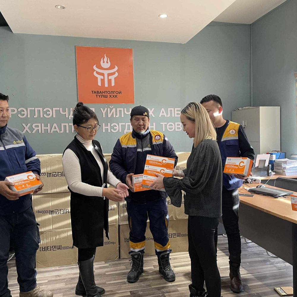 "Палома" эм ханган нийлүүлэх компаниас дархлаажуулалтын аяны хүрээнд Тавантолгой түлш ХХК-ийн хамт олонд 1000гр-тай витамин С гардуулан өглөө. Идэр есийн хүйтэнд гэр хорооллын айл өрхийг шахмал түлшээр хангах, угаараас сэргийлэх, зуух пийшингийн засвар үйлчилгээ, заавар зөвлөгөө өгч ажилладаг та бүхний ажил өрнүүн байхыг хүссэн юм.