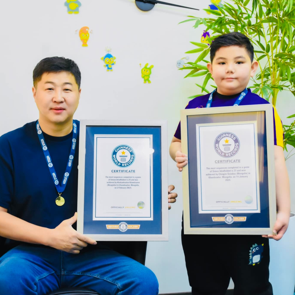 Ой тогтоолтын Simon тоглоомыг харахгүйгээр буюу нүдээ боож зөвхөн хөг сонсоод алдаагүй дарж тоглох төрөлд Х.Хатанбаатар 325 даралт (25 үе), түүний шавь С.Чингим 276 даралт (23 үе)-ыг тус тус алдаагүй санаснаар Гиннесийн дээд амжилтын эзэд болжээ.